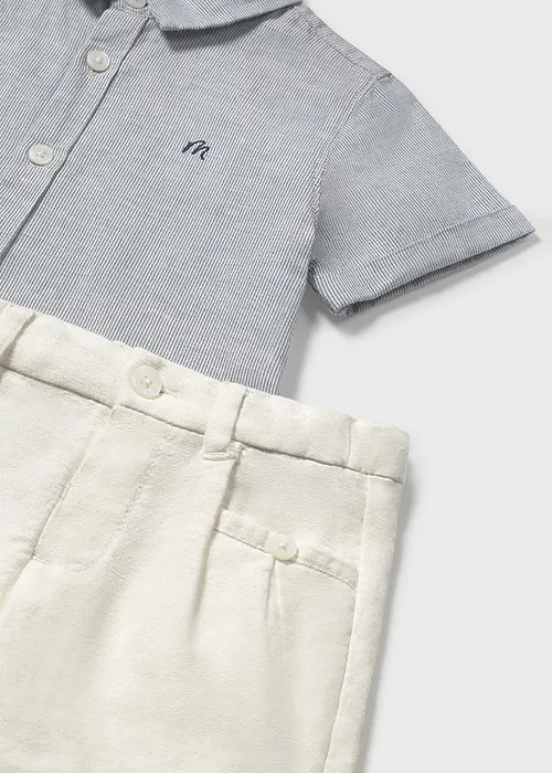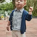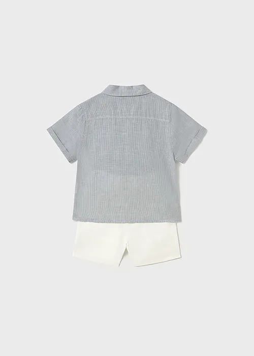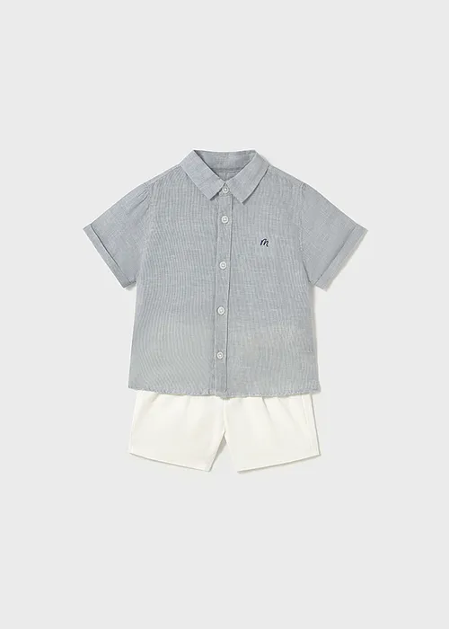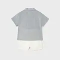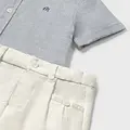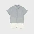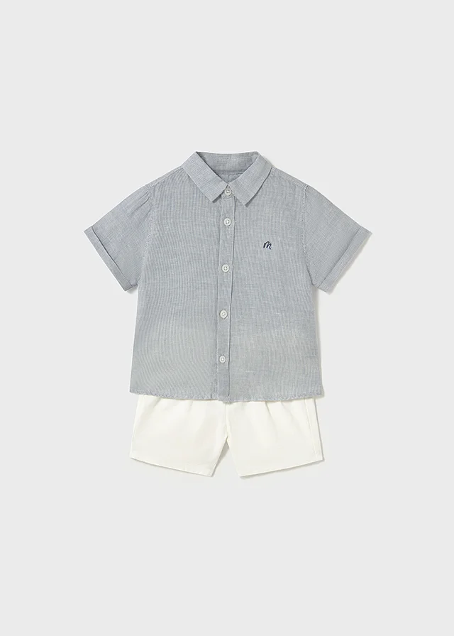 Conjuntounto de camisa y bermudas coordinadas para bebé. Camisa de manga corta en tejido a contraste para bebé. Cuello camisero. Cierre con botones en la parte delantera. Pantalón de tipo bermuda para bebé. Cierre con un único botón. Bragueta simulada. Goma elástica regulable con botones en el interior de la cinturilla para mayor ajuste. Modelo con pinzas. Al elegir nuestros productos de algodón estás apoyando nuestra inversión en la iniciativa Better Cotton. El algodón Better Cotton se obtiene mediante un sistema de balance de masas y no se puede rastrear físicamente hasta los productos finales. Sin embargo, los productores de algodón se benefician de la demanda de Better Cotton en volúmenes equivalentes.