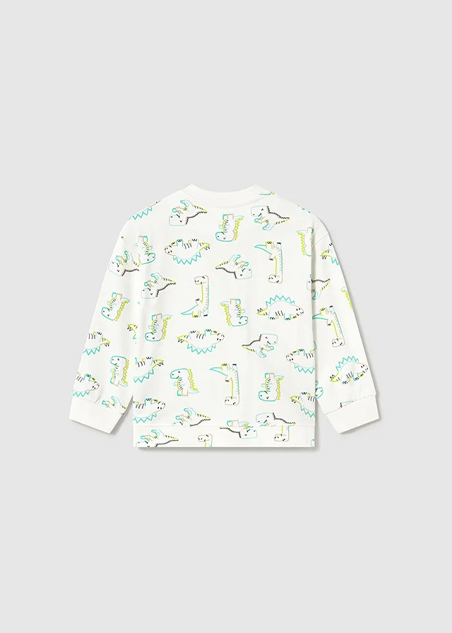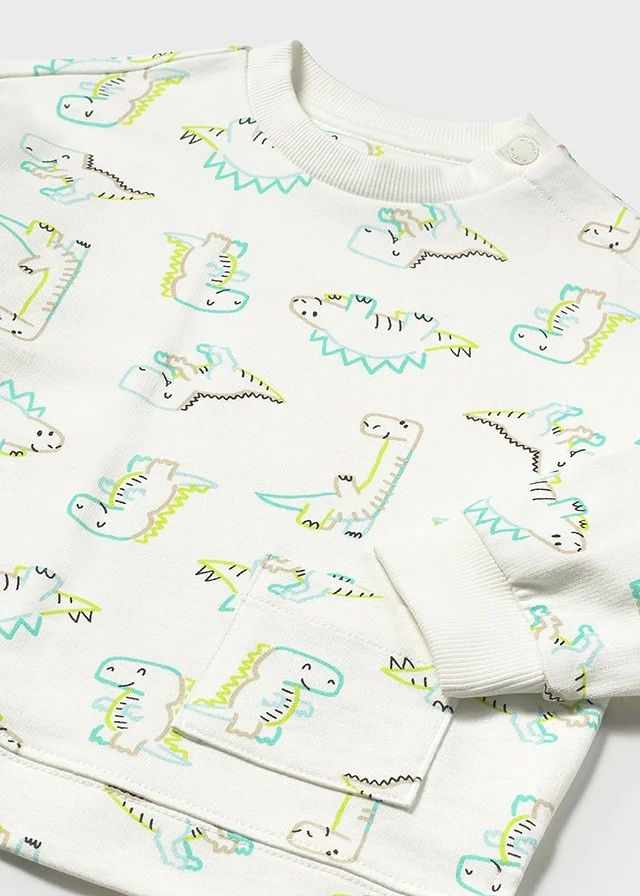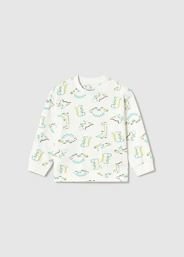 Sweater de manga larga para bebé. Cuello redondo. Botón a presión en el cuello para facilitar la puesta de la prenda. Suave tejido de algodón elástico. Bajo, puños y cuello de punto elástico para un mejor ajuste. Bolsillo funcional en la parte delantera. Diseño estampado. Al elegir nuestros productos de algodón estás apoyando nuestra inversión en la iniciativa Better Cotton. El algodón Better Cotton se obtiene mediante un sistema de balance de masas y no se puede rastrear físicamente hasta los productos finales. Sin embargo, los productores de algodón se benefician de la demanda de Better Cotton en volúmenes equivalentes.