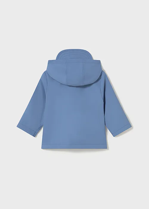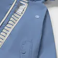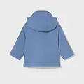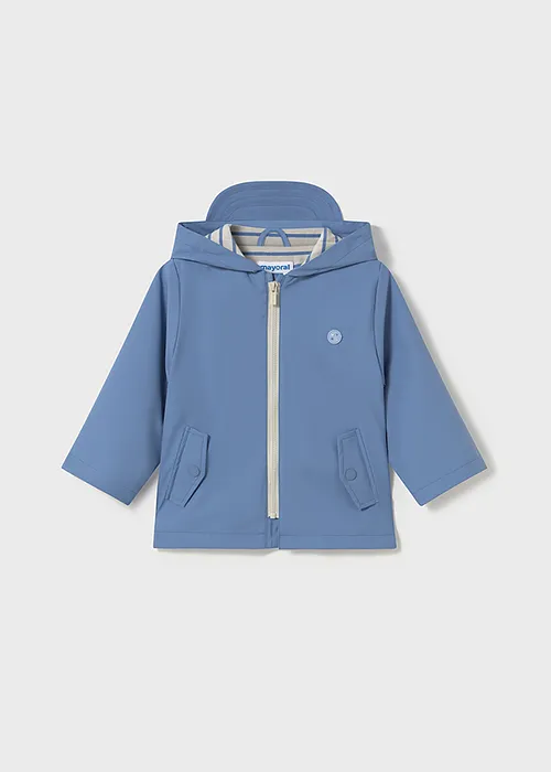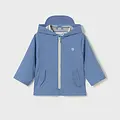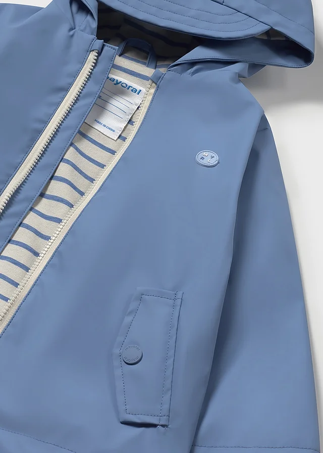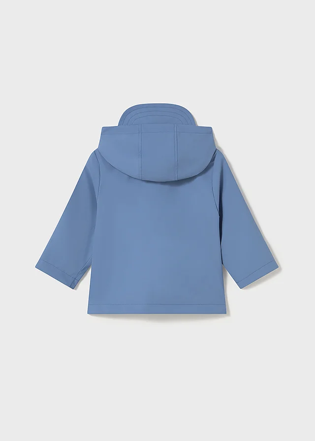 Chubasquero de manga larga para bebé. Cuello con capucha y visera. Cierre central delantero con cremallera. Moderno exterior de polipiel. Forro interior de color a contraste. Bolsillos funcionales en la parte delantera.
