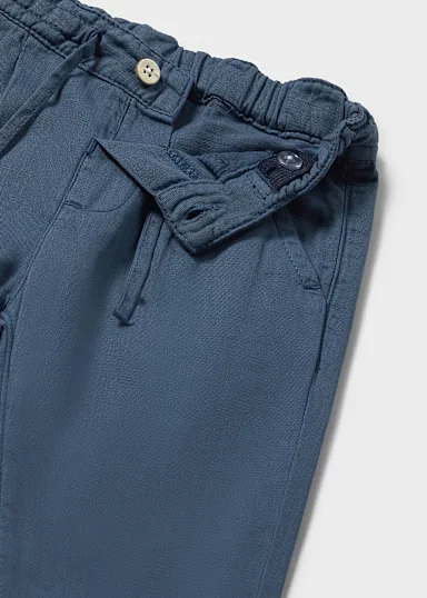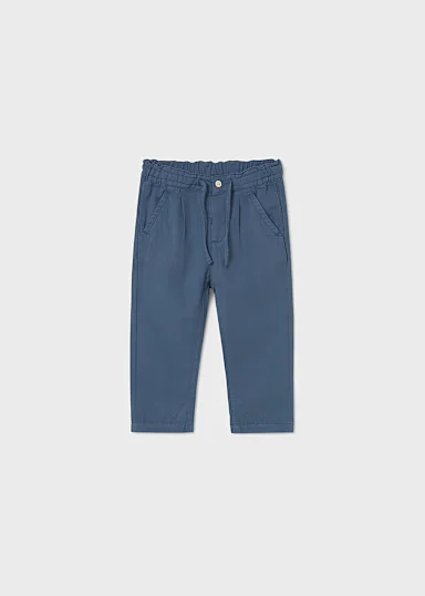 Pantalón largo para bebé de tipo chino y corte recto, perfecto para las ocasiones más elegantes. Goma elástica regulable con botones en el interior de la cinturilla para mayor ajuste. Cinturilla elástica con cordón. Tejido de aspecto fresco y actual con lino. Bolsillos funcionales en el delantero y en la parte trasera de la prenda. Al elegir nuestros productos de algodón estás apoyando nuestra inversión en la iniciativa Better Cotton. El algodón Better Cotton se obtiene mediante un sistema de balance de masas y no se puede rastrear físicamente hasta los productos finales. Sin embargo, los productores de algodón se benefician de la demanda de Better Cotton en volúmenes equivalentes.