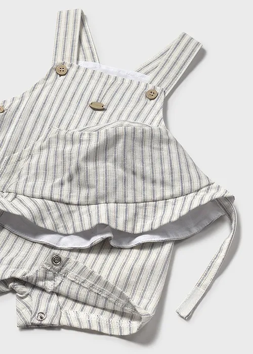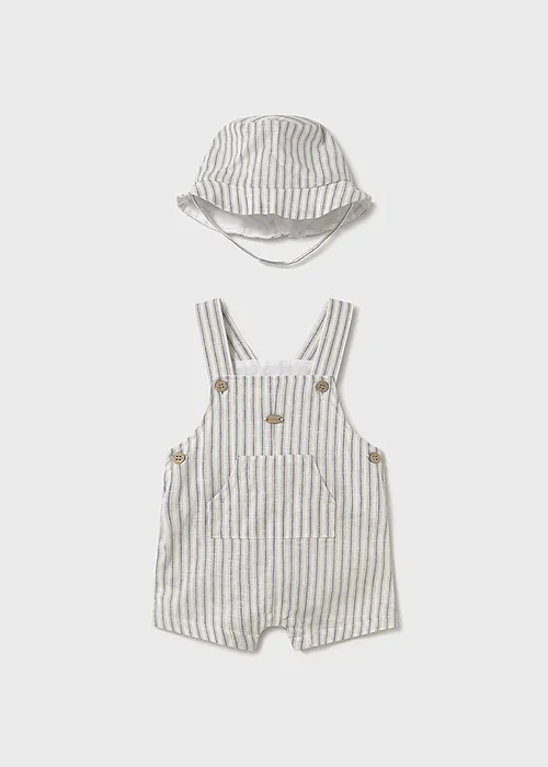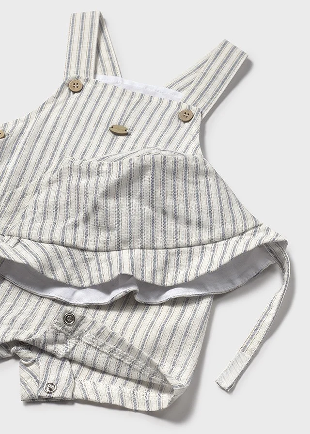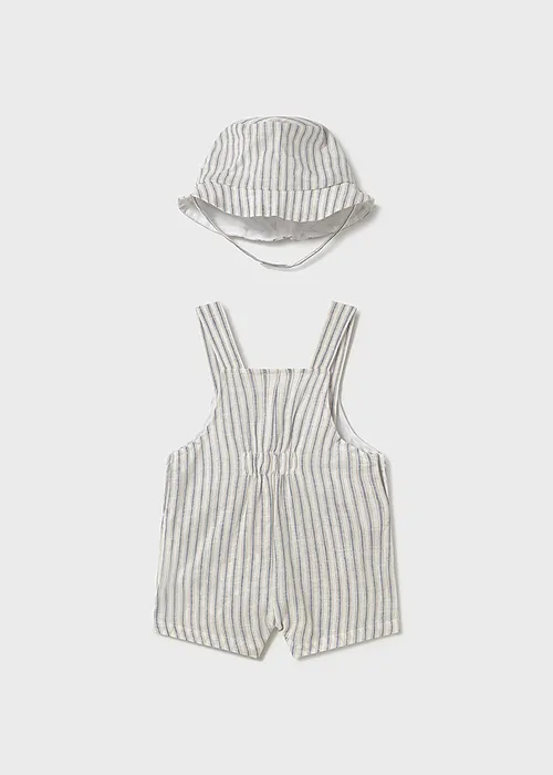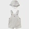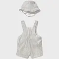 Original Conjunto de dos piezas para recién nacido. Diseño con tirantes. Abertura con botones en la entrepierna para facilitar el cambio de pañal. Las tallas mayores, de 18 a 36 meses, no llevan dicha abertura. Cierre con botones. Cinturilla elástica. Tejido de aspecto fresco y actual con lino. Diseño estampado. Gorro para recién nacido confeccionado con tejidos suaves y ligeros, que le proporcionará momentos de frescura en los días más calurosos de primavera y verano. Tejido de aspecto fresco y actual con lino.
