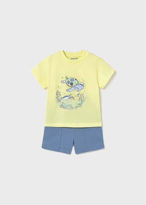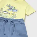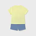 Franela de manga corta para bebé. Cuello redondo. Botón a presión en el cuello para facilitar la puesta de la prenda. Elementos de adorno: serigrafía (print). Estampado veraniego. Pantalón de tipo bermuda para bebé. Cinturilla elástica con cordón. Tejido 100% algodón. Al elegir nuestros productos de algodón estás apoyando nuestra inversión en la iniciativa Better Cotton. El algodón Better Cotton se obtiene mediante un sistema de balance de masas y no se puede rastrear físicamente hasta los productos finales. Sin embargo, los productores de algodón se benefician de la demanda de Better Cotton en volúmenes equivalentes.