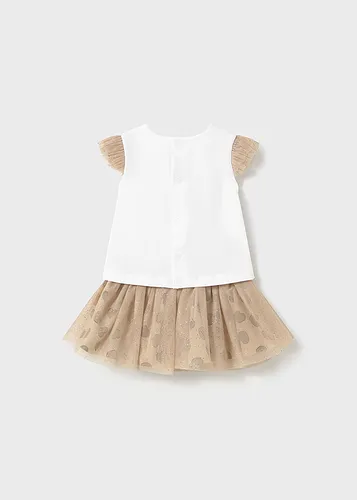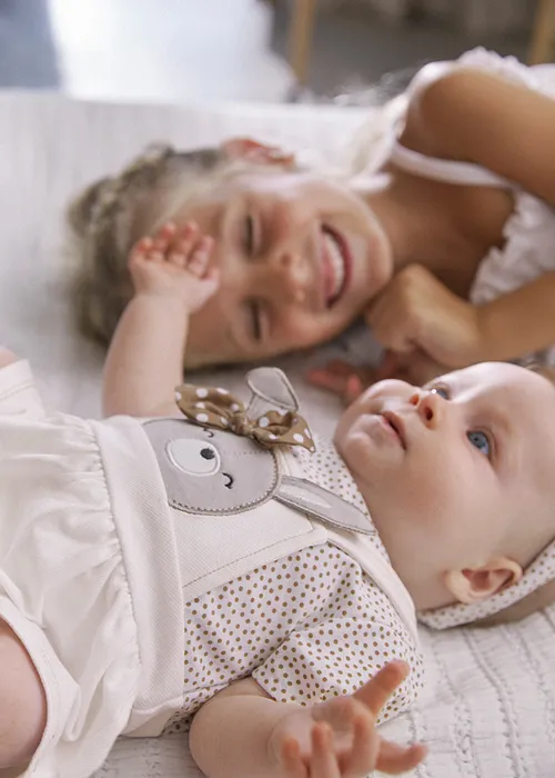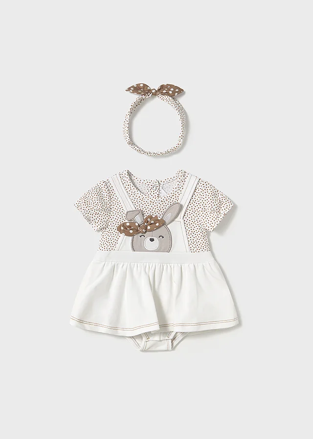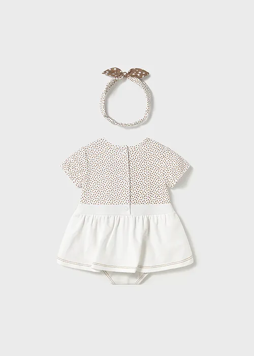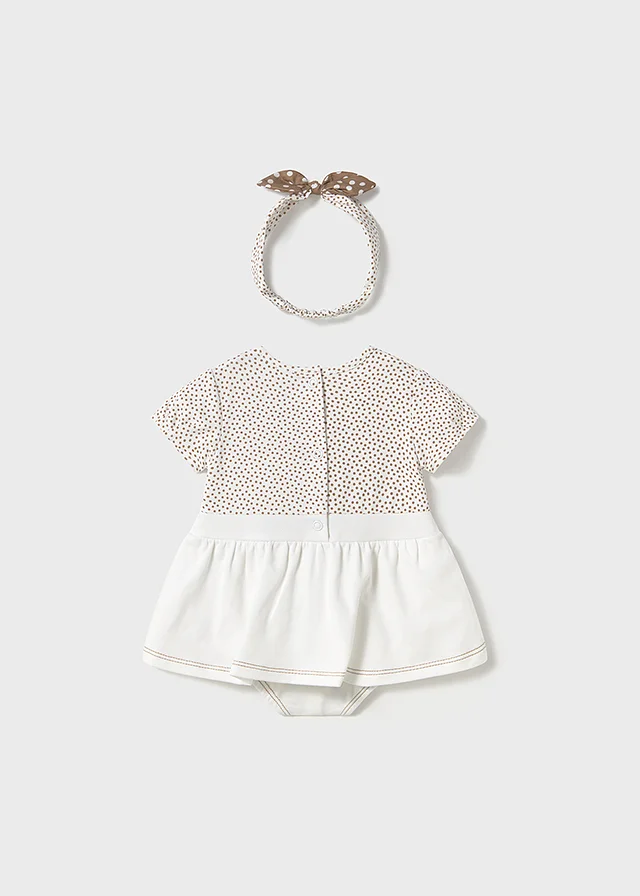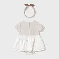 Original set de dos piezas para recién nacido. Pelele de manga corta con pliegues para recién nacida. Diseño con Bragas simulado en superposición. Cierre con botones a presión en la parte posterior. Botones a presión en la entrepierna para facilitar la puesta de la prenda. Elementos de adorno: bordado. Diseño estampado. Original diadema para recién nacida, perfecta como accesorio para completar el look. Suave tejido de algodón elástico. Elementos de adorno: lazo. Diseño estampado. Al elegir nuestros productos de algodón estás apoyando nuestra inversión en la iniciativa Better Cotton. El algodón Better Cotton se obtiene mediante un sistema de balance de masas y no se puede rastrear físicamente hasta los productos finales. Sin embargo, los productores de algodón se benefician de la demanda de Better Cotton en volúmenes equivalentes.