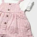 Original set de dos piezas para recién nacido. Franela de manga corta para recién nacido con detalles de volantes. Pequeña abertura en la espalda con cierre de botón para facilitar la puesta de la prenda. Original pantalón Bragas para recién nacido. Cierre con botones. Cierre con botones en la entrepierna. Diseño con volante en el bajo de la prenda. Bolsillos funcionales en la parte delantera. Diseño estampado. Al elegir nuestros productos de algodón estás apoyando nuestra inversión en la iniciativa Better Cotton. El algodón Better Cotton se obtiene mediante un sistema de balance de masas y no se puede rastrear físicamente hasta los productos finales. Sin embargo, los productores de algodón se benefician de la demanda de Better Cotton en volúmenes equivalentes.