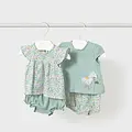 Original Conjunto de cuatro piezas para recién nacido. Franela de manga corta para recién nacido. Pequeña abertura en la espalda con cierre de botón para facilitar la puesta de la prenda. Elementos de adorno: bordado. Pantalón de tipo short para recién nacido. Cinturilla elástica. Diseño estampado. Franela de manga corta para recién nacido. Pequeña abertura en la espalda con cierre de botón para facilitar la puesta de la prenda. Diseño estampado. Pantalón de tipo short para recién nacido. Cinturilla elástica. Al elegir nuestros productos de algodón estás apoyando nuestra inversión en la iniciativa Better Cotton. El algodón Better Cotton se obtiene mediante un sistema de balance de masas y no se puede rastrear físicamente hasta los productos finales. Sin embargo, los productores de algodón se benefician de la demanda de Better Cotton en volúmenes equivalentes.