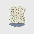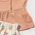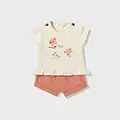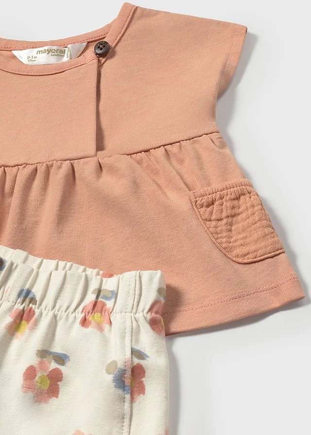 Set de cuatro piezas para recién nacida formado por dos Conjuntos de Franela de manga corta y short combinables. Franela de manga corta para recién nacida. Cuello redondo. Botones en el hombro para facilitar la puesta. Suave tejido de algodón elástico. Contiene fornitura sostenible. Diseño con volante en el bajo de la prenda. Diseño estampado. Pantalón de tipo short para recién nacida. Cinturilla elástica. Tejido 100% algodón. Detalle de bajo con vuelta. Franela de manga corta para recién nacida. Cuello redondo. Abertura con botón en el cuello para facilitar la puesta de la prenda. Suave tejido de algodón elástico. Contiene fornitura sostenible. Bolsillos funcionales en la parte delantera. Pantalón de tipo short para recién nacida. Cinturilla elástica. Suave tejido de algodón elástico. Al elegir nuestros productos de algodón estás apoyando nuestra inversión en la iniciativa Better Cotton. El algodón Better Cotton se obtiene mediante un sistema