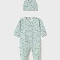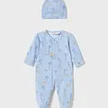 Original set de dos piezas para recién nacido. Pelele de manga larga para recién nacido. Diseño con pies. Cierre con botones en la parte delantera. Cierre con botones en la entrepierna. Diseño estampado. Las tallas mayores de este modelo (12 y 18 meses) presentan una suela antideslizante. Dulce gorro para recién nacido. Al elegir nuestros productos de algodón estás apoyando nuestra inversión en la iniciativa Better Cotton. El algodón Better Cotton se obtiene mediante un sistema de balance de masas y no se puede rastrear físicamente hasta los productos finales. Sin embargo, los productores de algodón se benefician de la demanda de Better Cotton en volúmenes equivalentes.