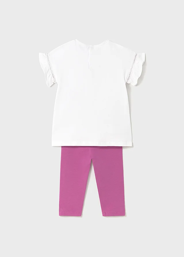 Conjuntounto de dos piezas para bebé compuesto por una Franela y un pantalón tipo legging combinado. Camisa de manga corta para bebé con detalles de volantes. Cuello redondo. Cierre con botones a presión en la parte posterior. Suave tejido de algodón elástico. Elementos de adorno: apliques decorativos, glitter, serigrafía (print). Pantalón tipo legging para bebé. Cinturilla elástica. Al elegir nuestros productos de algodón estás apoyando nuestra inversión en la iniciativa Better Cotton. El algodón Better Cotton se obtiene mediante un sistema de balance de masas y no se puede rastrear físicamente hasta los productos finales. Sin embargo, los productores de algodón se benefician de la demanda de Better Cotton en volúmenes equivalentes.