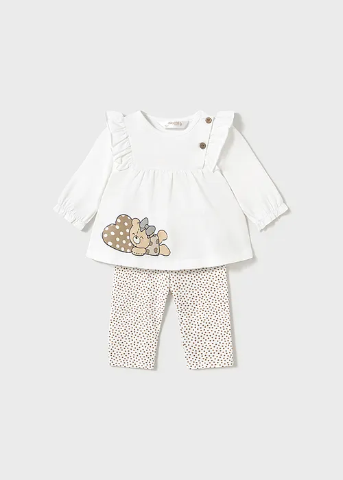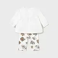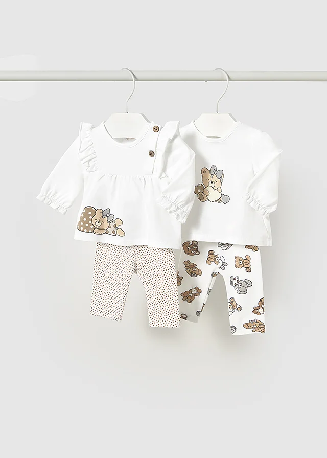 Franela de manga larga para recién nacido con puños elásticos. Pequeña abertura en la espalda con cierre de botón para facilitar la puesta de la prenda. Elementos de adorno: dibujo en la parte delantera. Pantalón tipo legging para recién nacido. Cinturilla elástica. Diseño estampado. Franela de manga larga para recién nacido con puños elásticos. Cierre lateral con botones a presión. Modelo con volantes. Elementos de adorno: dibujo en la parte delantera. Pantalón tipo legging para recién nacido. Cinturilla elástica. Al elegir nuestros productos de algodón estás apoyando nuestra inversión en la iniciativa Better Cotton. El algodón Better Cotton se obtiene mediante un sistema de balance de masas y no se puede rastrear físicamente hasta los productos finales. Sin embargo, los productores de algodón se benefician de la demanda de Better Cotton en volúmenes equivalentes.