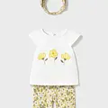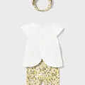 Original Conjunto de tres piezas para recién nacida. Franela de manga corta para recién nacida. Cierre con botones a presión en la parte posterior. Suave tejido de algodón elástico. Pantalón tipo legging para recién nacida. Cinturilla elástica. Suave tejido de algodón elástico. Original diadema para recién nacida, perfecta como accesorio para completar el look. Al elegir nuestros productos de algodón estás apoyando nuestra inversión en la iniciativa Better Cotton. El algodón Better Cotton se obtiene mediante un sistema de balance de masas y no se puede rastrear físicamente hasta los productos finales. Sin embargo, los productores de algodón se benefician de la demanda de Better Cotton en volúmenes equivalentes.