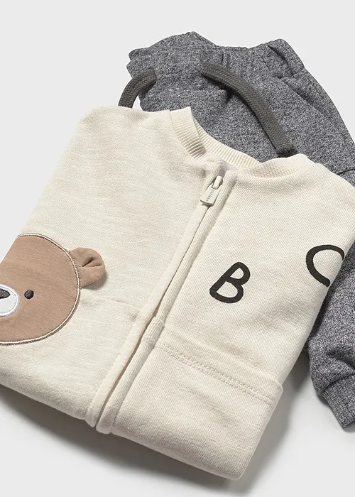 Chándal de tres piezas para recién nacido compuesto por una Sweater, un pantalón largo deportivo y una Franela a juego. Pantalón largo deportivo para recién nacido de gran confort. Cinturilla con cordón ajustable. Bolsillos funcionales en la parte delantera. Diseño liso. Sweater de manga larga para recién nacido. Cierre central delantero con cremallera. Bolsillo funcional en la parte delantera. Elementos de adorno: apliques decorativos, bordados. Franela de manga corta para recién nacido. Cuello redondo. Botón a presión en el cuello para facilitar la puesta de la prenda. Elementos de adorno: serigrafía (print). Al elegir nuestros productos de algodón estás apoyando nuestra inversión en la iniciativa Better Cotton. El algodón Better Cotton se obtiene mediante un sistema de balance de masas y no se puede rastrear físicamente hasta los productos finales. Sin embargo, los productores de algodón se benefician de la demanda de Better Cotton en volúmenes equ