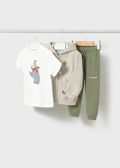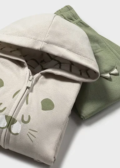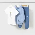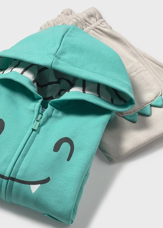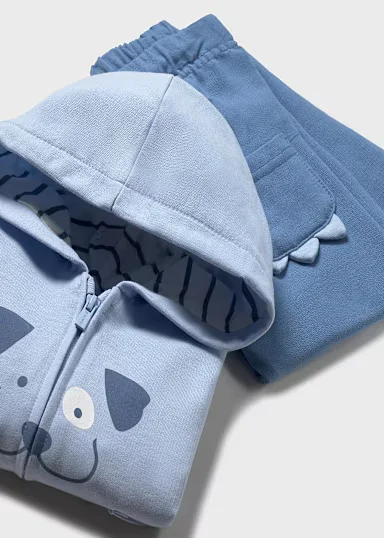 Chándal de tres piezas para bebé compuesto por una Sweater, un pantalón largo deportivo y una Franela a juego. Sweater de manga larga para bebé. Cuello con capucha. Cierre central delantero con cremallera. Bajo y puños de punto elástico para un mejor ajuste. Bolsillos funcionales en la parte delantera. Prenda con pieza movible perteneciente a nuestra colección interactiva PLAY WITH. Franela de manga corta para bebé. Botones en los dos hombros para facilitar la puesta de la prenda. Diseño estampado. Pantalón largo deportivo para bebé de gran confort. Cintura con cordón interior ajustable. Rodilleras reforzadas en el interior para evitar el desgaste en la zona y ofrecer mayor resistencia y durabilidad. Bolsillos funcionales en la parte delantera.