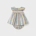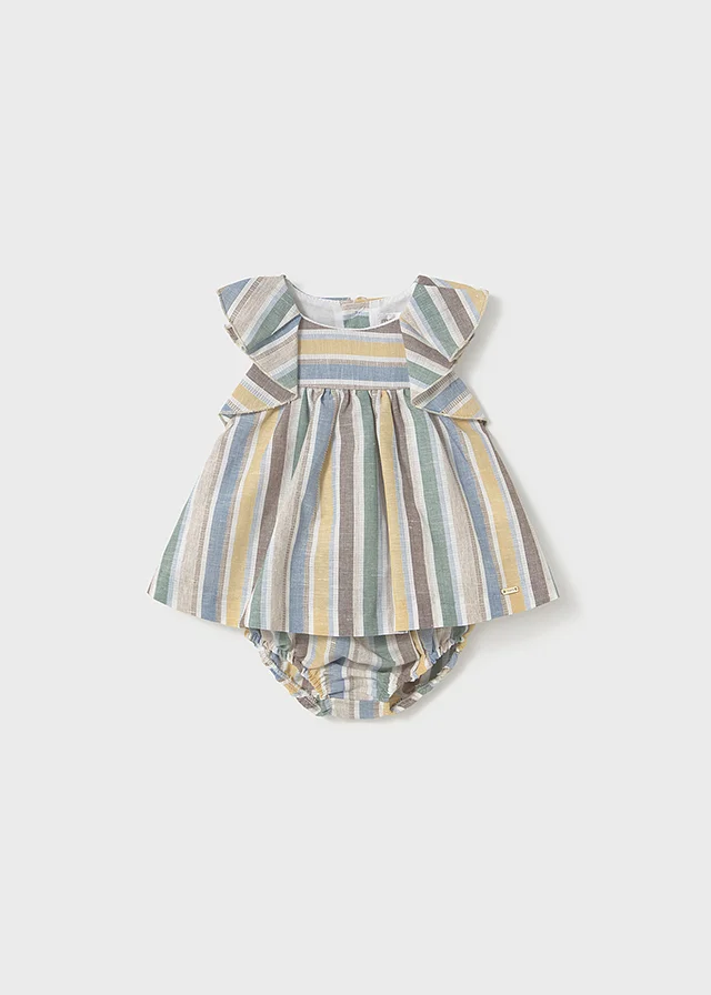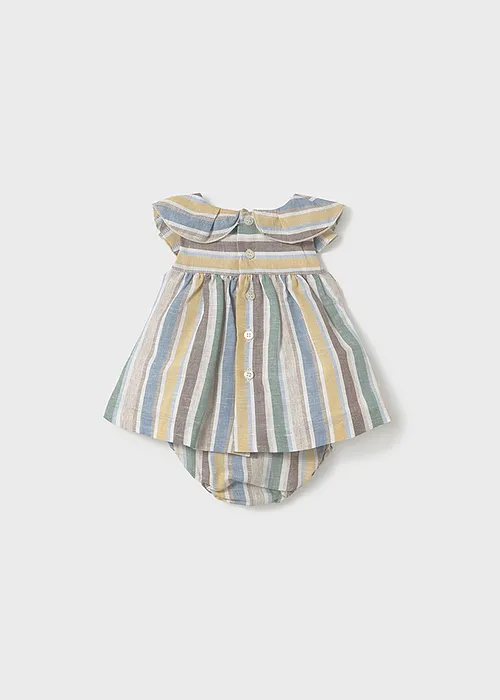 Contiene lino sostenible europeo. Conjunto de dos piezas para recién nacida formado por un vestido con cubrepañal a juego. Vestido de manga corta para recién nacida. Cierre con botones en la espalda para facilitar la puesta de la prenda. Tejido de aspecto fresco y actual con lino. Modelo con rizo. Motivo de rayas. Cubrepañal para recién nacido. Cinturilla elástica. Tejido de aspecto fresco y actual con lino. Al elegir nuestros productos de algodón estás apoyando nuestra inversión en la iniciativa Better Cotton. El algodón Better Cotton se obtiene mediante un sistema de balance de masas y no se puede rastrear físicamente hasta los productos finales. Sin embargo, los productores de algodón se benefician de la demanda de Better Cotton en volúmenes equivalentes.