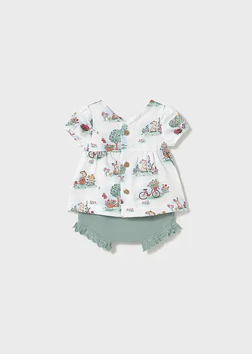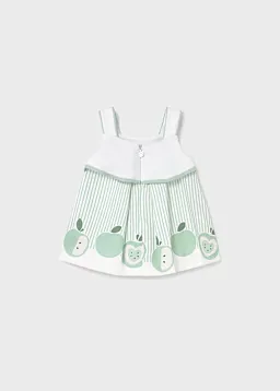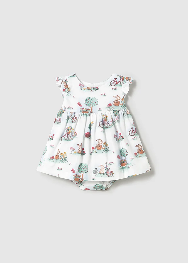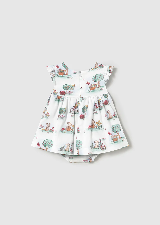 Original set de dos piezas para recién nacida. Vestido de tirantes con volantes para recién nacida. Cierre con cremallera en la parte trasera para una puesta ágil y rápida. Diseño estampado. Cubrepañal para recién nacida. Diseño estampado. Al elegir nuestros productos de algodón estás apoyando nuestra inversión en la iniciativa Better Cotton. El algodón Better Cotton se obtiene mediante un sistema de balance de masas y no se puede rastrear físicamente hasta los productos finales. Sin embargo, los productores de algodón se benefician de la demanda de Better Cotton en volúmenes equivalentes.