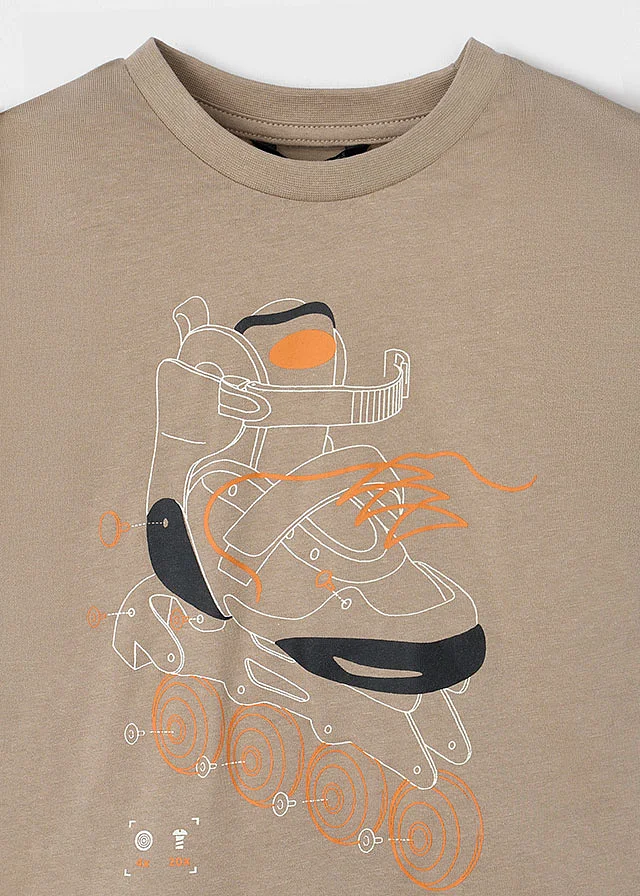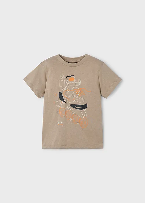 Contiene algodón reciclado. Franela de manga corta para niño. Prenda con motivo que brilla en la oscuridad perteneciente a nuestra colección interactiva PLAY WITH.