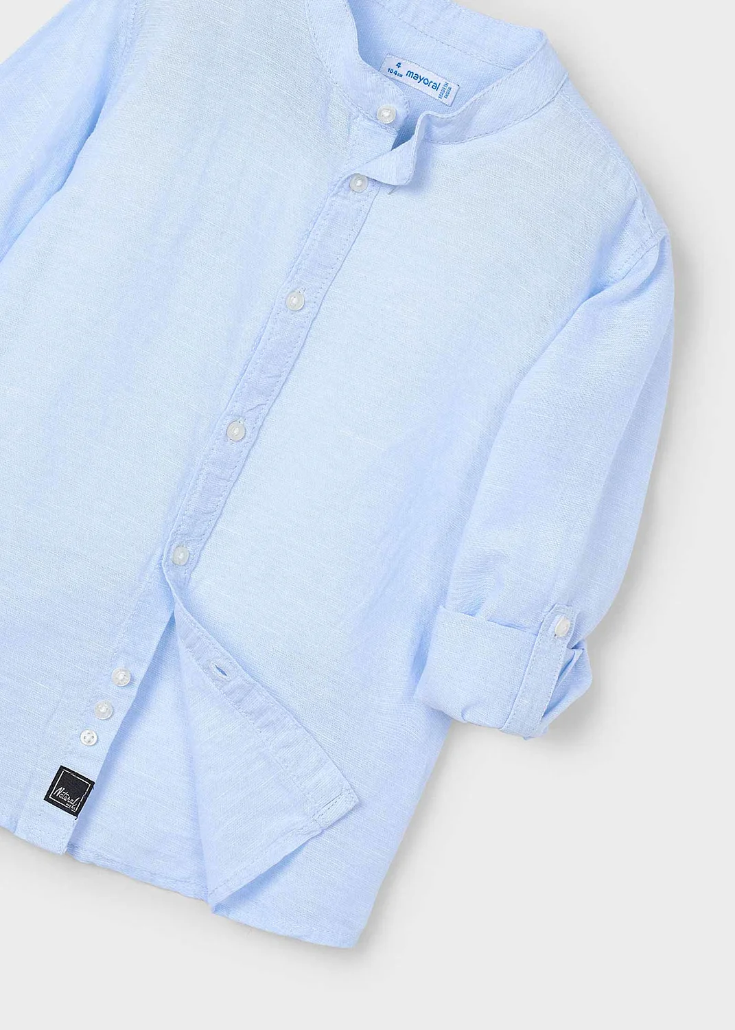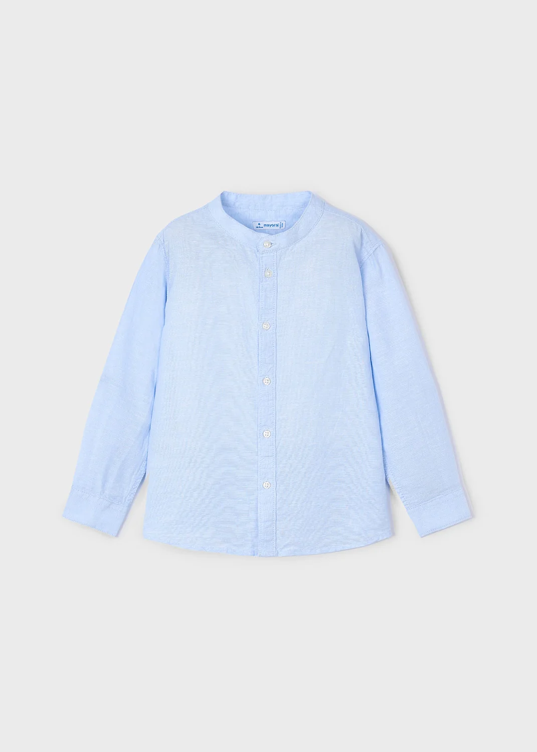 Camisa de manga larga para niño con trabilla y botón en el lateral para poder recogerla y ajustar el largo. Modelo con cuello mao al tono. Cierre con botones en la parte delantera. Tejido de aspecto fresco y actual con lino. Al elegir nuestros productos de algodón estás apoyando nuestra inversión en la iniciativa Better Cotton. El algodón Better Cotton se obtiene mediante un sistema de balance de masas y no se puede rastrear físicamente hasta los productos finales. Sin embargo, los productores de algodón se benefician de la demanda de Better Cotton en volúmenes equivalentes.