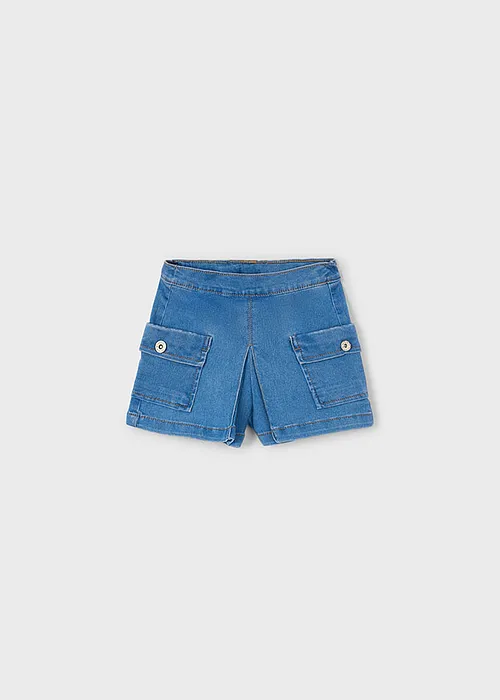 Pantalón corto para niña. Goma elástica regulable con botones en el interior de la cinturilla para mayor ajuste. Tejido vaquero cómodo y combinable para los looks diarios. Modelo con fuelle. Bolsillos funcionales en la parte delantera. Al elegir nuestros productos de algodón estás apoyando nuestra inversión en la iniciativa Better Cotton. El algodón Better Cotton se obtiene mediante un sistema de balance de masas y no se puede rastrear físicamente hasta los productos finales. Sin embargo, los productores de algodón se benefician de la demanda de Better Cotton en volúmenes equivalentes.
