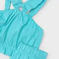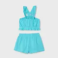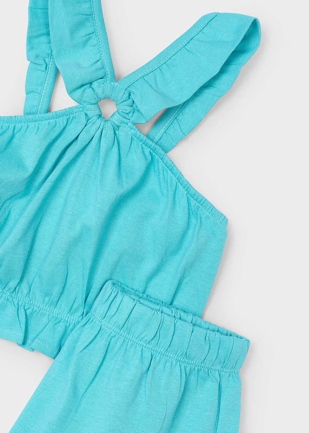 Original set de dos piezas para niña. Top de tirantes con volantes para niña. Tejido 100% algodón. Diseño con volante en el bajo de la prenda. Pantalón corto para niña. Cinturilla elástica. Al elegir nuestros productos de algodón estás apoyando nuestra inversión en la iniciativa Better Cotton. El algodón Better Cotton se obtiene mediante un sistema de balance de masas y no se puede rastrear físicamente hasta los productos finales. Sin embargo, los productores de algodón se benefician de la demanda de Better Cotton en volúmenes equivalentes.