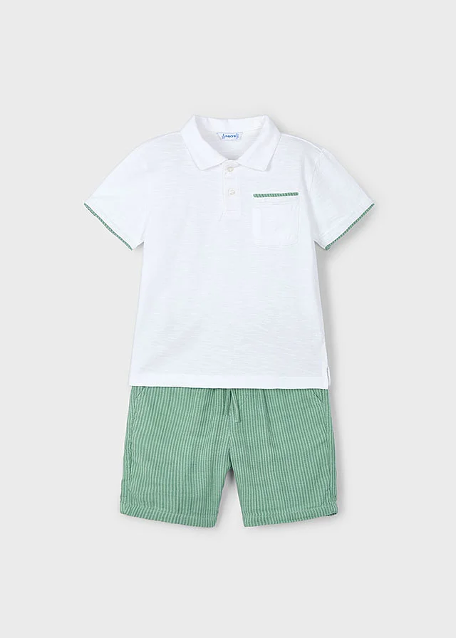Conjuntounto de Chemise de manga corta y bermudas combinadas para niño. Chemise de manga corta para niño. Cuello de Chemise clásico. Cierre con botones en la parte delantera. Bolsillo funcional en la parte delantera. Pantalón de tipo bermuda para niño. Cinturilla elástica. Cinturilla elástica con cordón. Bolsillos funcionales en la parte delantera. Bolsillo trasero funcional. Motivo de rayas. Al elegir nuestros productos de algodón estás apoyando nuestra inversión en la iniciativa Better Cotton. El algodón Better Cotton se obtiene mediante un sistema de balance de masas y no se puede rastrear físicamente hasta los productos finales. Sin embargo, los productores de algodón se benefician de la demanda de Better Cotton en volúmenes equivalentes.