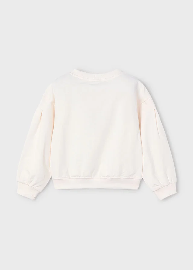Original set de dos piezas para niña. Sweater de manga larga para niña. Bajo, puños y cuello de punto elástico para un mejor ajuste. Diseño estampado. Accesorio de pelo para niña de tipo pinza, ideal para combinar con diferentes estilismos.