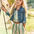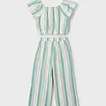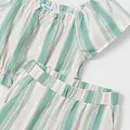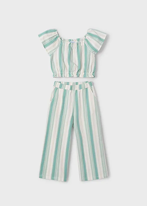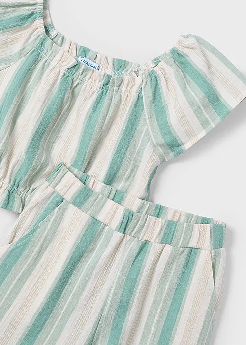Original Conjunto para niña. Top de manga corta para niña. Bajo elástico para un mejor ajuste. Motivo de rayas. Pantalón largo de tipo culotte para niña, de línea amplia y holgada desde las caderas hasta el bajo. Ideal tanto para los looks más sofisticados como para los más informales. Cinturilla elástica. Bolsillos en los laterales. Motivo de rayas. Al elegir nuestros productos de algodón estás apoyando nuestra inversión en la iniciativa Better Cotton. El algodón Better Cotton se obtiene mediante un sistema de balance de masas y no se puede rastrear físicamente hasta los productos finales. Sin embargo, los productores de algodón se benefician de la demanda de Better Cotton en volúmenes equivalentes.