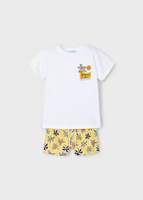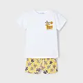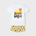 Original Conjunto de dos piezas para niño. Franela de manga corta para niño. Cuello redondo. Tejido 100% algodón. Elementos de adorno: dibujo en la parte frontal y trasera de la prenda, serigrafía (print). Bañador corto para niño. Tejido elástico que aporta confort y libertad de movimientos. Elementos de adorno: cordón decorativo. Diseño estampado. Tejido con certificación UPF 40+, con un factor de protección ultravioleta aproximado del 97.5%. Ideal para proteger a tu peque de los nocivos rayos solares.