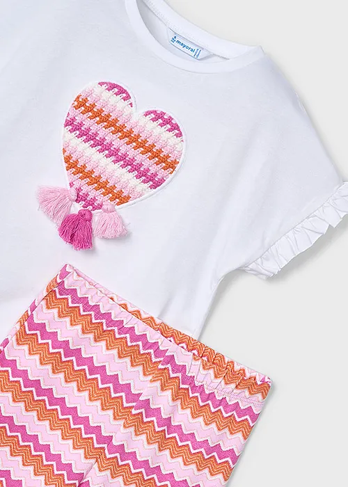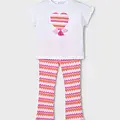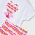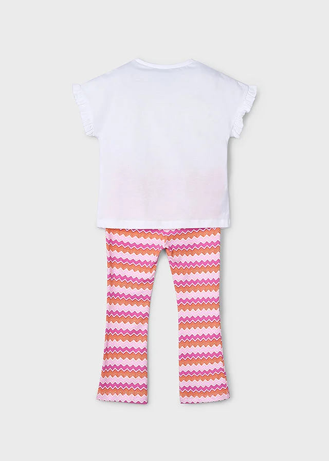 Conjuntounto de dos piezas para niña compuesto por una Franela y un pantalón tipo legging combinado. Franela de manga corta para niña con detalles de volantes. Cuello redondo. Elementos de adorno: bordado, flecos, serigrafía (print). Pantalón tipo legging para niña. Cinturilla elástica. Diseño estampado. Al elegir nuestros productos de algodón estás apoyando nuestra inversión en la iniciativa Better Cotton. El algodón Better Cotton se obtiene mediante un sistema de balance de masas y no se puede rastrear físicamente hasta los productos finales. Sin embargo, los productores de algodón se benefician de la demanda de Better Cotton en volúmenes equivalentes.