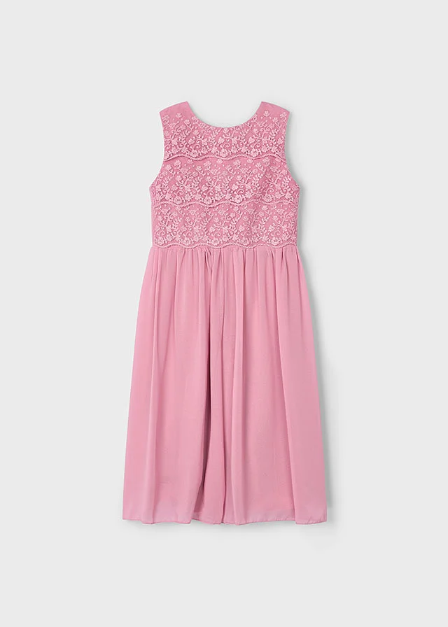 Jumper sin mangas para niña. Cierre central trasero con cremallera oculta. Modelo con rizo. Elementos de adorno: aberturas de adorno, bordados, encajes. Este exclusivo artículo pertenece a la colección de Ceremonia y ha sido diseñado para celebraciones, eventos y ocasiones especiales.