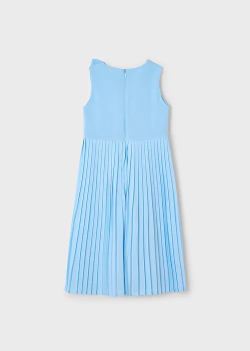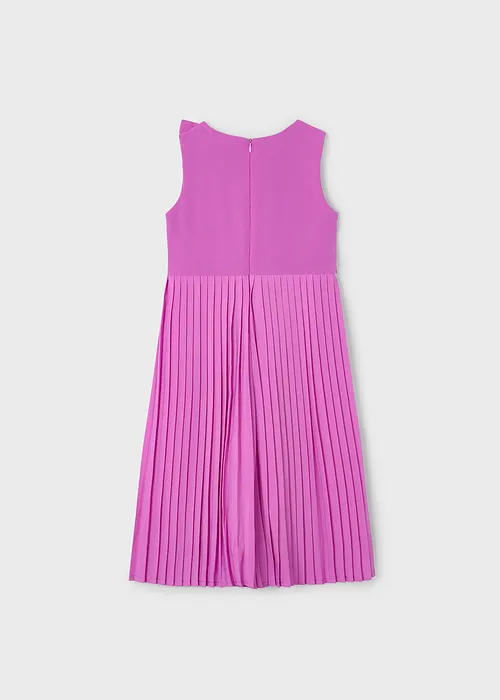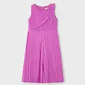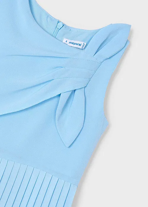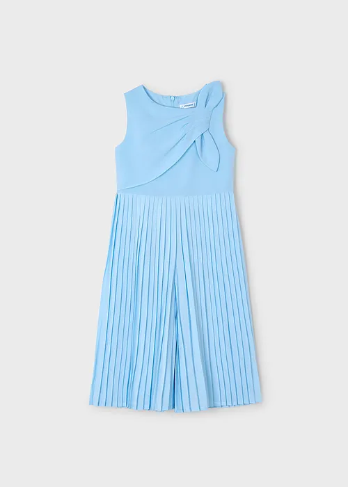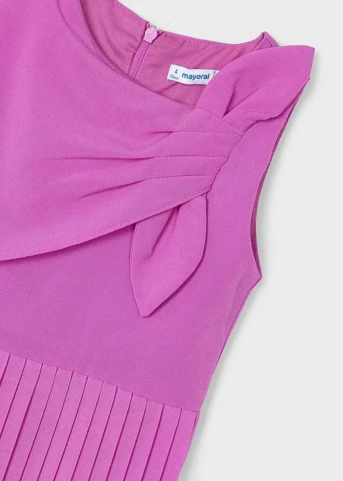 Jumper sin mangas para niña. Cuello asimétrico. Cierre con cremallera trasera invisible. Tejido fluido para una máxima comodidad en el día a día. Modelo con tableado. Elementos de adorno: lazo.