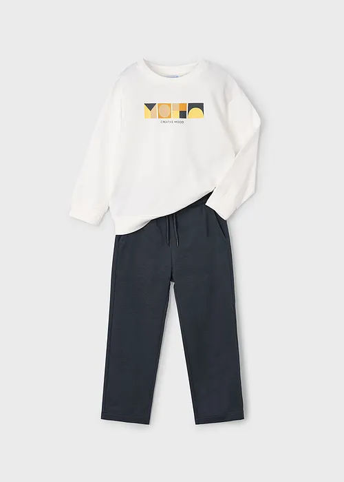 Chándal de dos piezas para niño con Sweater y pantalón largo. Sweater de manga larga para niño. Cuello redondo. Bajo, puños y cuello de punto elástico para un mejor ajuste. Elementos de adorno: serigrafía (print). Cinturilla elástica. Cinturilla elástica con cordón. Al elegir nuestros productos de algodón estás apoyando nuestra inversión en la iniciativa Better Cotton. El algodón Better Cotton se obtiene mediante un sistema de balance de masas y no se puede rastrear físicamente hasta los productos finales. Sin embargo, los productores de algodón se benefician de la demanda de Better Cotton en volúmenes equivalentes.