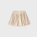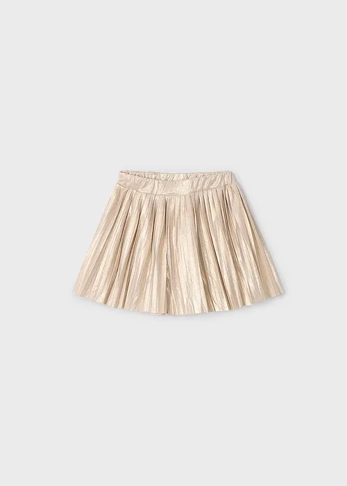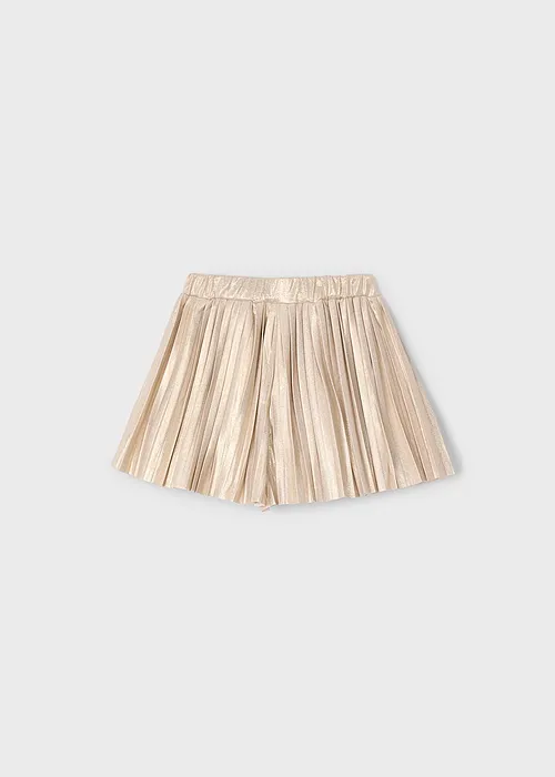 Contiene poliéster reciclado. Cómoda falda pantalón para niña. Goma elástica regulable con botones en el interior de la cinturilla para mayor ajuste. Modelo con diseño plisado. Elementos de adorno: detalles metalizados.
