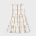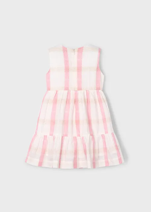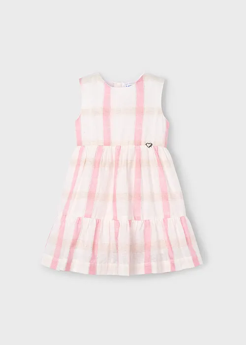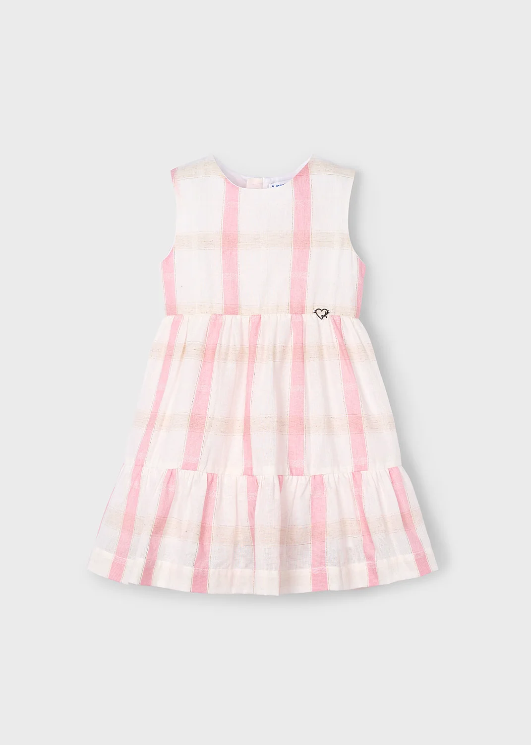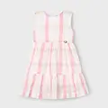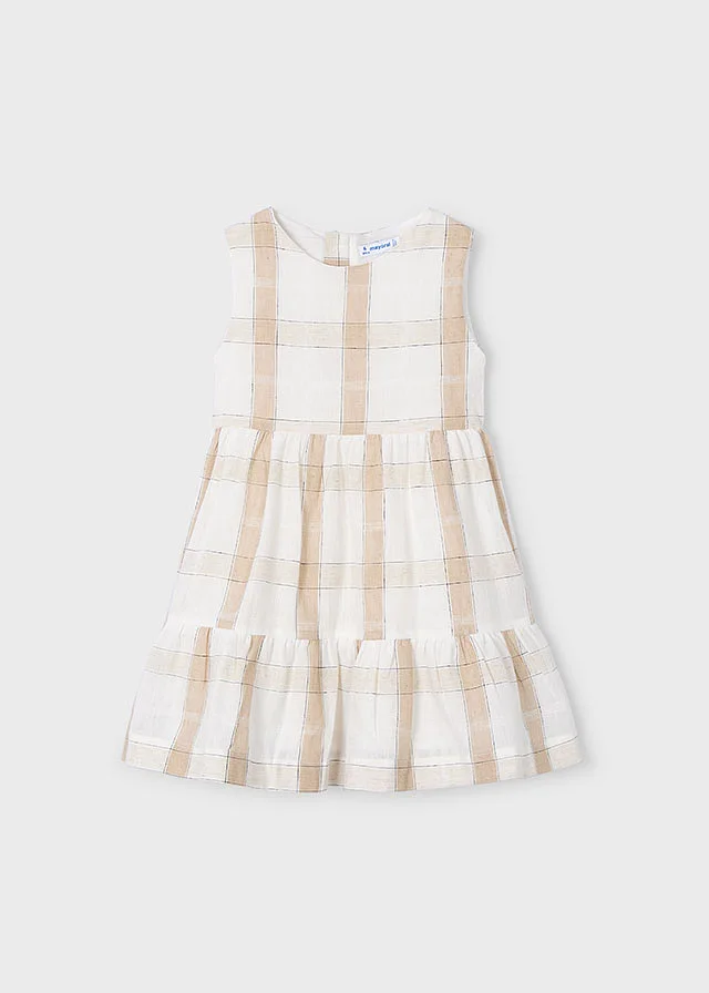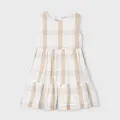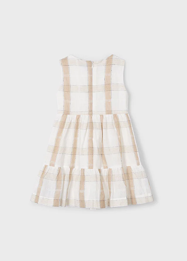 Vestido sin mangas para niña. Cierre con cremallera trasera invisible. Tejido de aspecto fresco y actual con lino. Diseño con volante en el bajo de la prenda. Diseño estampado.