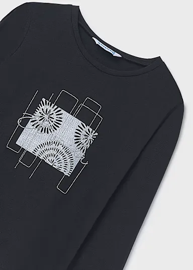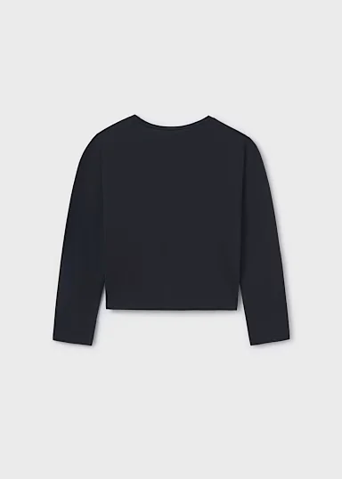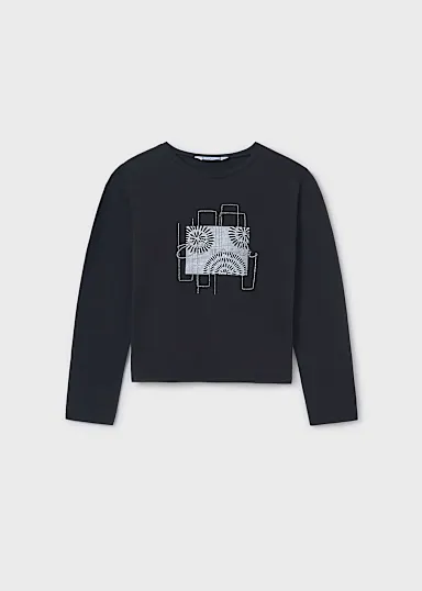 Franela de manga larga para chica. Cuello redondo. Tejido con hilos metalizados de acabado original y brillante. Elementos de adorno: serigrafía (print). Al elegir nuestros productos de algodón estás apoyando nuestra inversión en la iniciativa Better Cotton. El algodón Better Cotton se obtiene mediante un sistema de balance de masas y no se puede rastrear físicamente hasta los productos finales. Sin embargo, los productores de algodón se benefician de la demanda de Better Cotton en volúmenes equivalentes.