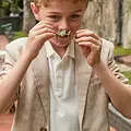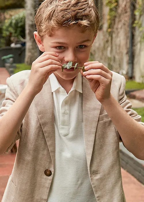 Chemise de manga corta para chico. Cuello de Chemise clásico. Cierre con botones en la parte delantera. Confección combinada en distintos tejidos para conseguir un diseño único y especial.