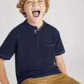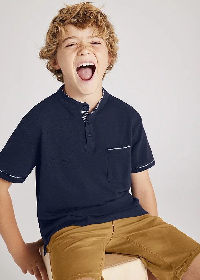 Chemise de manga corta para chico. Modelo con cuello mao al tono. Cierre con botones en la parte delantera. Tejido 100% algodón. Bolsillo funcional en la parte delantera. Al elegir nuestros productos de algodón estás apoyando nuestra inversión en la iniciativa Better Cotton. El algodón Better Cotton se obtiene mediante un sistema de balance de masas y no se puede rastrear físicamente hasta los productos finales. Sin embargo, los productores de algodón se benefician de la demanda de Better Cotton en volúmenes equivalentes.