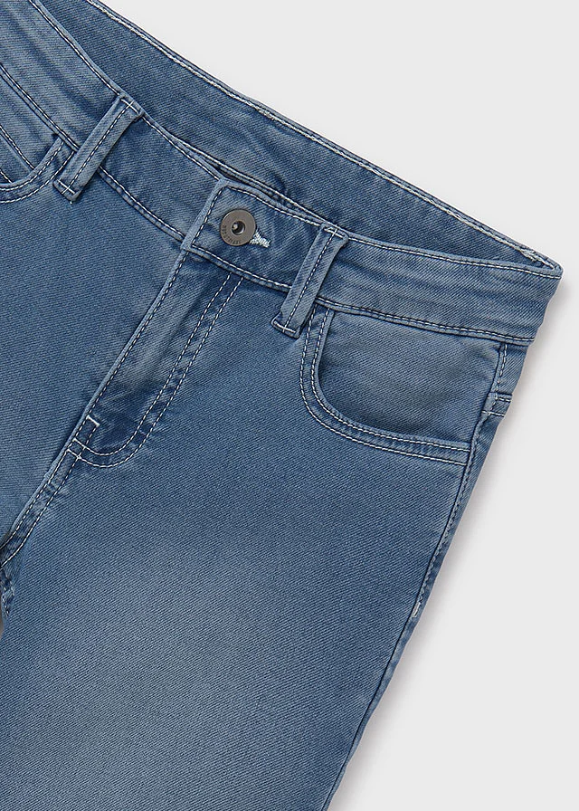 Pantalón de tipo bermuda para chico. Cierre con cremallera y botón. Goma elástica regulable con botones en el interior de la cinturilla para mayor ajuste. Tejido vaquero cómodo y combinable para los looks diarios. Al elegir nuestros productos de algodón estás apoyando nuestra inversión en la iniciativa Better Cotton. El algodón Better Cotton se obtiene mediante un sistema de balance de masas y no se puede rastrear físicamente hasta los productos finales. Sin embargo, los productores de algodón se benefician de la demanda de Better Cotton en volúmenes equivalentes.