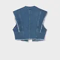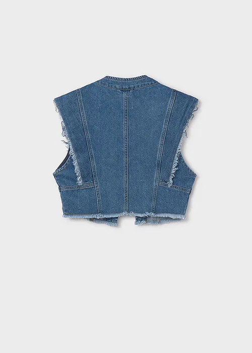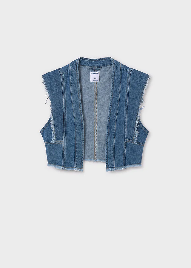 Chaleco para chica. Tejido vaquero cómodo y combinable para los looks diarios. Al elegir nuestros productos de algodón estás apoyando nuestra inversión en la iniciativa Better Cotton. El algodón Better Cotton se obtiene mediante un sistema de balance de masas y no se puede rastrear físicamente hasta los productos finales. Sin embargo, los productores de algodón se benefician de la demanda de Better Cotton en volúmenes equivalentes.