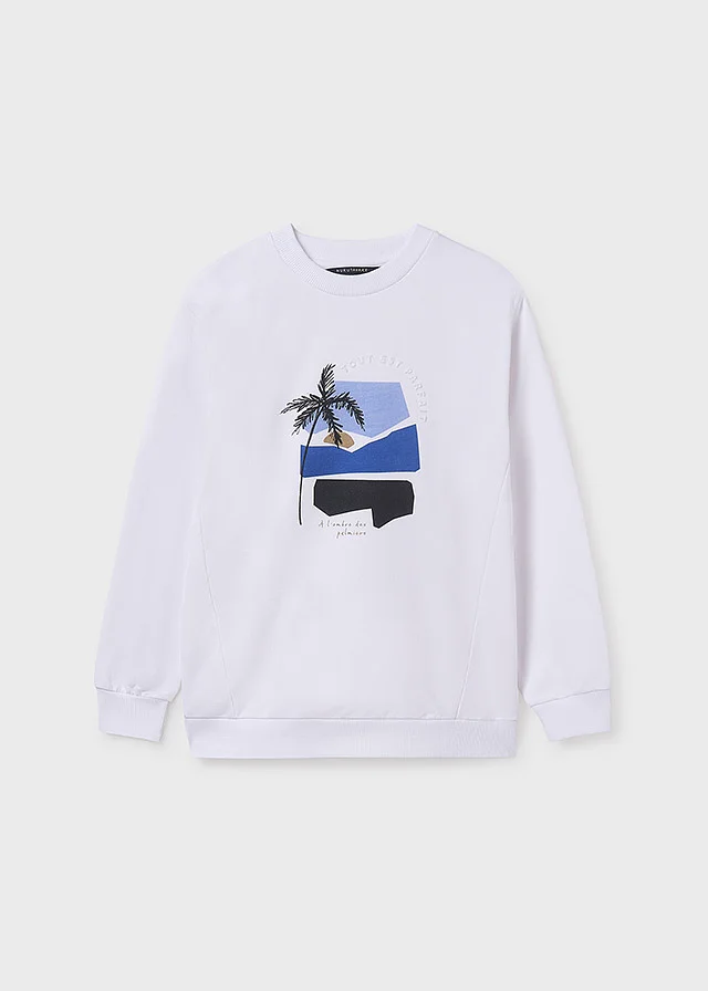 Sweater de manga larga para chico. Cuello redondo. Bajo y puños de punto elástico para un mejor ajuste. Elementos de adorno: detalle en relieve (embossed), serigrafía (print).