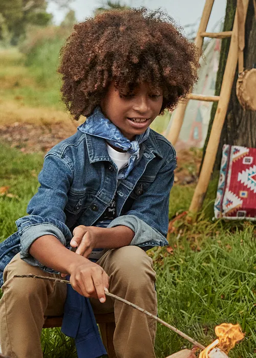Cazadora de manga larga para chico. Cierre con botones en la parte delantera. Tejido vaquero cómodo y combinable para los looks diarios.