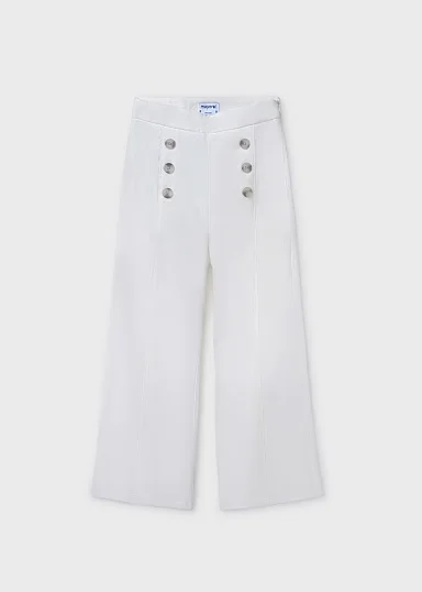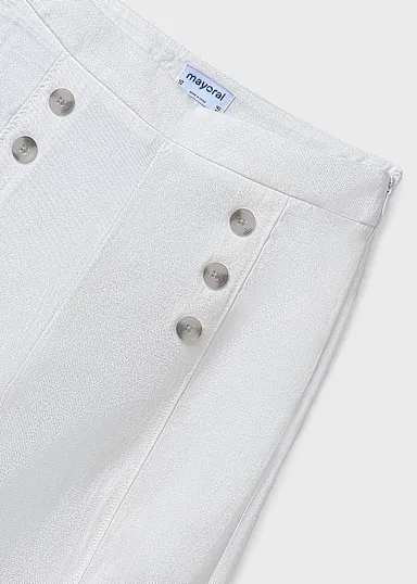 Pantalón para chica. Cierre con cremallera invisible en el lateral de la prenda. Confeccionado en twill, un tejido resistente y duradero con caída. Modelo con pinzas. Elementos de adorno: botones decorativos. Diseño liso.