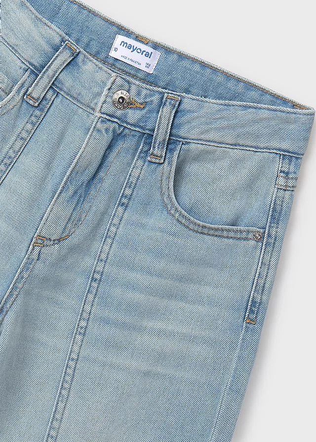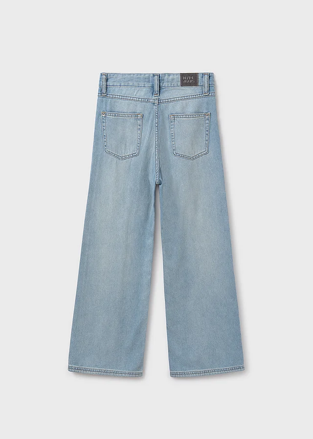 Pantalón para chica. Goma elástica regulable con botones en el interior de la cinturilla para mayor ajuste. Moderno tejido denim con efecto lavado y acabado desgastado. Tiro medio. Al elegir nuestros productos de algodón estás apoyando nuestra inversión en la iniciativa Better Cotton. El algodón Better Cotton se obtiene mediante un sistema de balance de masas y no se puede rastrear físicamente hasta los productos finales. Sin embargo, los productores de algodón se benefician de la demanda de Better Cotton en volúmenes equivalentes.