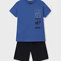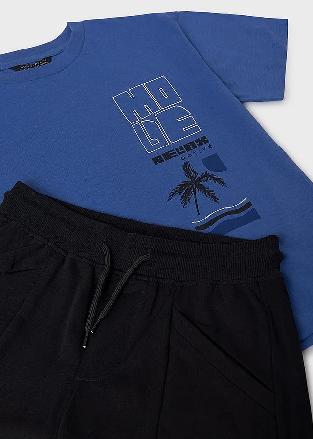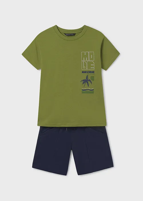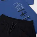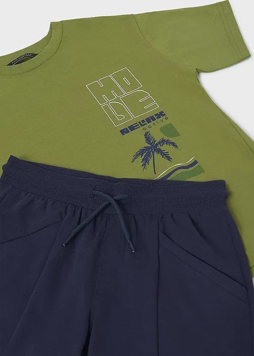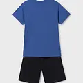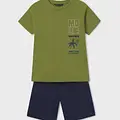 Conjuntounto de Franela y bermuda combinadas para chico. Franela de manga corta para chico. Cuello redondo. Tejido 100% algodón. Elementos de adorno: detalle en relieve (high density print), serigrafía (print). Pantalón de tipo bermuda para chico. Cinturilla elástica con cordón. Suave tejido de algodón elástico. Diseño con múltiples bolsillos. Diseño liso. Al elegir nuestros productos de algodón estás apoyando nuestra inversión en la iniciativa Better Cotton. El algodón Better Cotton se obtiene mediante un sistema de balance de masas y no se puede rastrear físicamente hasta los productos finales. Sin embargo, los productores de algodón se benefician de la demanda de Better Cotton en volúmenes equivalentes.