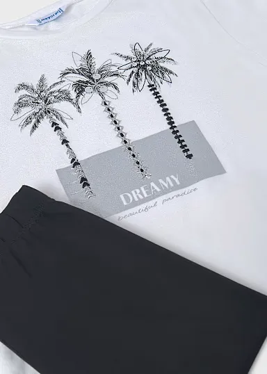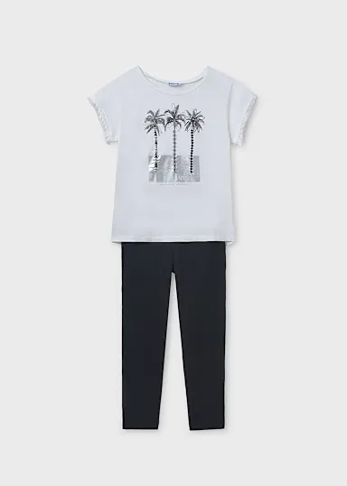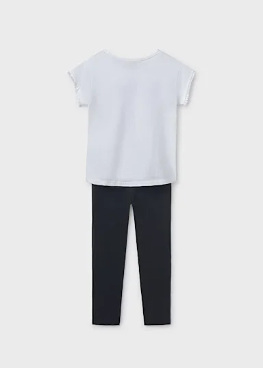 Conjuntounto de dos piezas para chica compuesto por una Franela y un pantalón tipo legging combinado. Franela de líneas relajadas para chica. Elementos de adorno: bordados, lentejuelas, flecos, serigrafía (print). Pantalón tipo legging para chica. Cinturilla elástica. Al elegir nuestros productos de algodón estás apoyando nuestra inversión en la iniciativa Better Cotton. El algodón Better Cotton se obtiene mediante un sistema de balance de masas y no se puede rastrear físicamente hasta los productos finales. Sin embargo, los productores de algodón se benefician de la demanda de Better Cotton en volúmenes equivalentes.