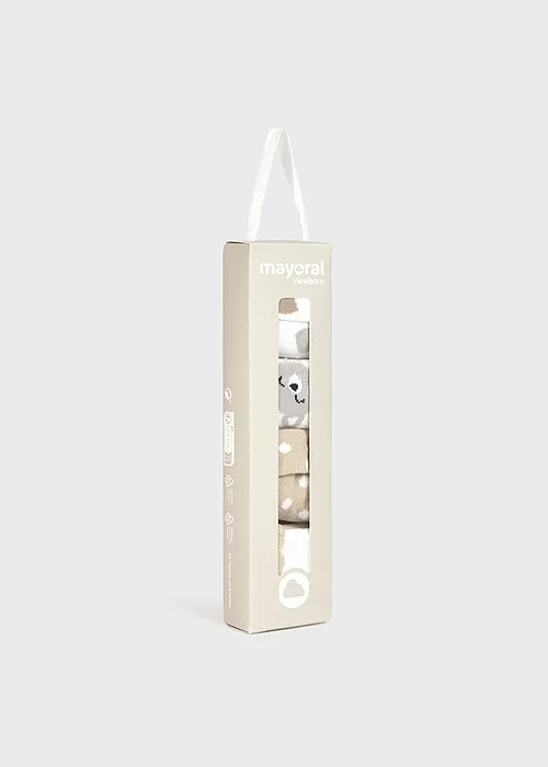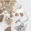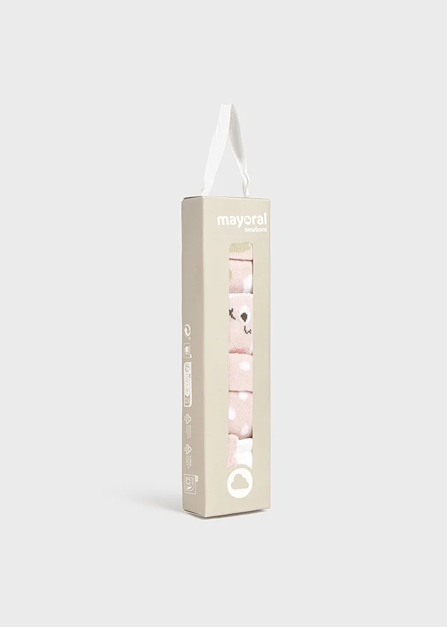 Pack de cuatro calcetines. Contiene algodón orgánico. Set de cuatro pares de calcetines para recién nacido. Diseño estampado.