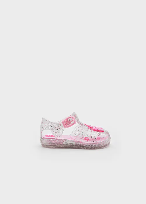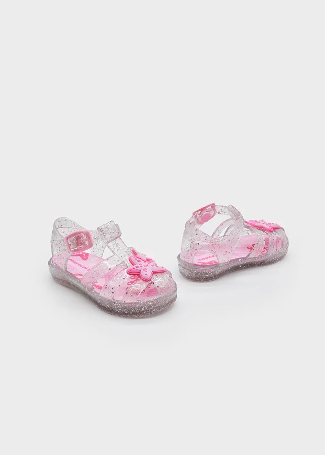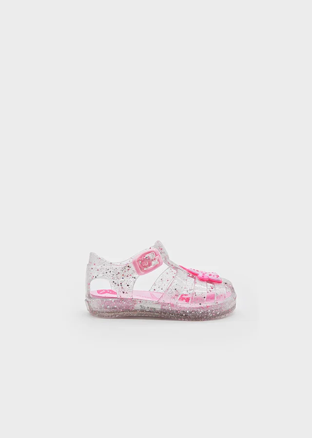 Sandalias para bebé de estilo fresco y veraniego. La mejor opción para los chapuzones de los más pequeños. Cierre con hebilla ajustable para asegurar una adecuada sujeción del calzado.