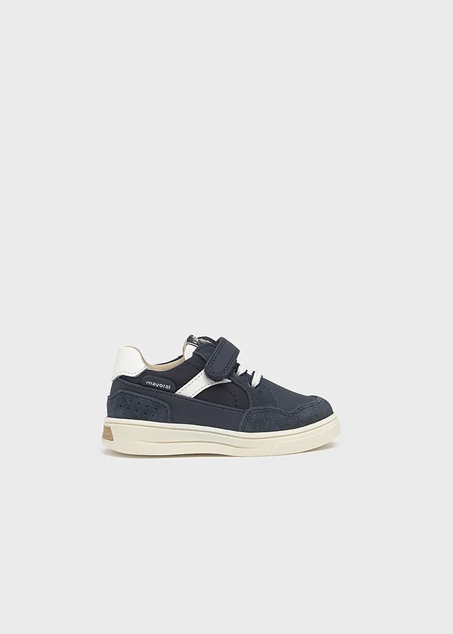 Zapatillas para bebé de estilo casual, combinables y versátiles. Material exterior combinado de piel y otros materiales. Todos nuestros zapatos se realizan con pieles libres de cromo. Forro interior de algodón transpirable y plantilla de piel. Cierre con velcro ajustable que garantiza una perfecta sujeción del pie.