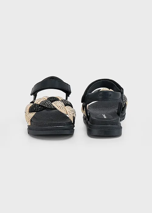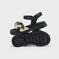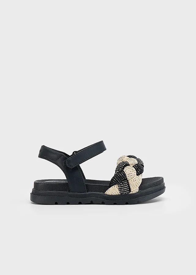 Sandalias de verano para niña perfectas para los días de calor. Material exterior combinado de piel y otros materiales. Todos nuestros zapatos se realizan con pieles libres de cromo. Suela de caucho ligera y flexible. Cierre con velcro ajustable que garantiza una perfecta sujeción del pie. Detalle de escarcha (glitter).