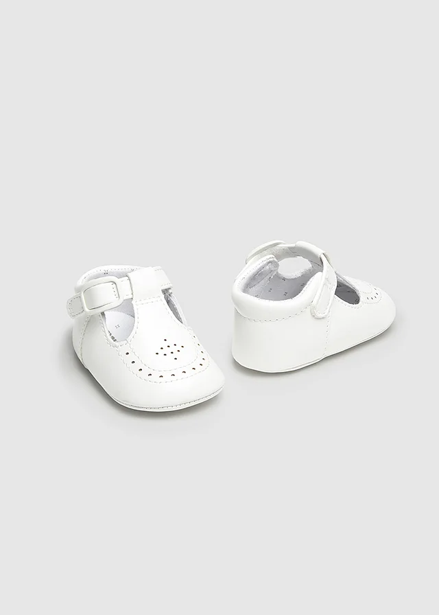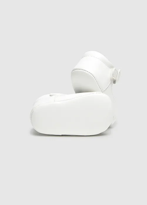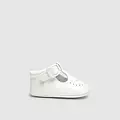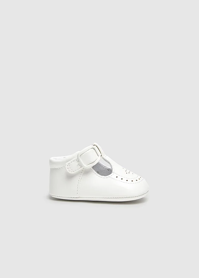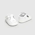Zapatos de tipo pepito con los que podrás vestir los pies de tu bebé en todo tipo de ocasiones. Material exterior efecto piel. Forro interior y plantilla de algodón transpirable. Cierre con velcro ajustable que garantiza una perfecta sujeción del pie.